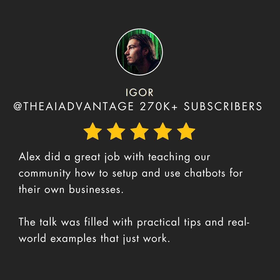 I know you want to learn AI and put it to work for you. Cut through all that overwhelm and anxiety. Get the shortcut, apply what really works and get results.To win back your precious time, enjoy life and earn more.Because I checked around and so many of the "AI gurus" just throw at you 10.000 prompts...and 98% are useless and fake.So I decided to take a different approach:Teach practical AI to smart humans, test it first on myself and then share it.I already did it in Las Vegas and Cornell Tech, New York in front of 500 business leaders and they loved this material."Meat and potatoes" of AI.And now I look forward to helping you become an AI Power User with chatbots, tailored workflows, and the best selected AI tools to make more money, save hours each day, and triple your effectiveness.I'm opening up this course to a limited amount of beta users first, to help ambitious but busy professionals, creators and entrepreneurs, go from AI Confused to AI Power User in 1 weekend or 4 hours, and win their time back.BEGINNER friendly. BUT this is NOT AI theory. We will use ChatGPT, Make, Midjourney and other tools. No coding skills required.So if you want to join the beta of this results-driven AI pro group, led by a productivity and AI automation expert, I'd recommend you act FAST.Because price rises every new update and beta spots are limited.IMPORTANT: "Why you?" you might be asking.Because I've been doing workshops for professionals since 5 years, for companies like Google, as an ex Google Ads trainer, I did AI workshops in New York and Las Vegas, and I also did workshops for the communities of AI thought leaders and creators, like the AI Advantage (200.000+ subscribers on Youtube).Plus I've been prompting for hundreds if not thousands of hours and I'm teaching you the shortcuts.
