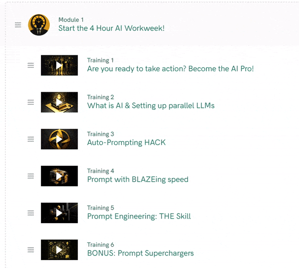 You get YOUR valuable time back to enjoy human life or get ahead. Simple.But also:✅ AI foundations & time audit:Discover the most powerful AI tools for your business and conduct a personalized time audit to pinpoint your biggest time-wasters.(Value: Estimated 5 hours saved per week identifying automation opportunities)✅ AI task automation mastery:Automate repetitive tasks. We'll build custom AI workflows that free you up for more strategic work.(Value: Estimated 4 hours saved per week on repetitive tasks)✅ AI content creation & marketing:Leverage AI to generate content ideas, draft social media posts, and personalize marketing campaigns. Get ready to attract more clients with less effort.(Value: Estimated 5 hours saved per week on content creation and marketing)✅ Exclusive "AI Powerhouse" Masterclass content:Receive my collection of selected AI tools and workflows specifically designed for solopreneurs and small businesses.(Value: Saves you countless hours of repetitive work)Bonus: